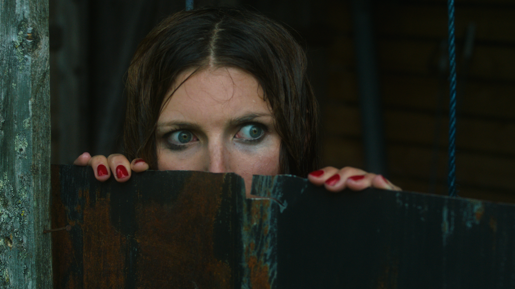 That somebody poking around in question is Robin Richards (Andréa Winter), a wealthy novelist whose latest book was a bit of a flop and so, at the suggestion of her publisher, she goes off to a rural farm retreat in Sweden with the aim of recharging her batteries and getting her creative juices flowing once again. However, Robin is not a lady used to living off the land, taking cold showers under a makeshift shower unit made from a watering can, not having a phone signal and she is certainly not used to interacting with people like Hans (Christer Cavallius), the driver who picks her up from the station who also happens to be her number one fan, and retreat owner Farmer Rolf (Rolf Brunnström), who has some rather strange habits that draw Robin’s attention, such as shooting chickens with a crossbow, and whose wife is buried in one of his fields.