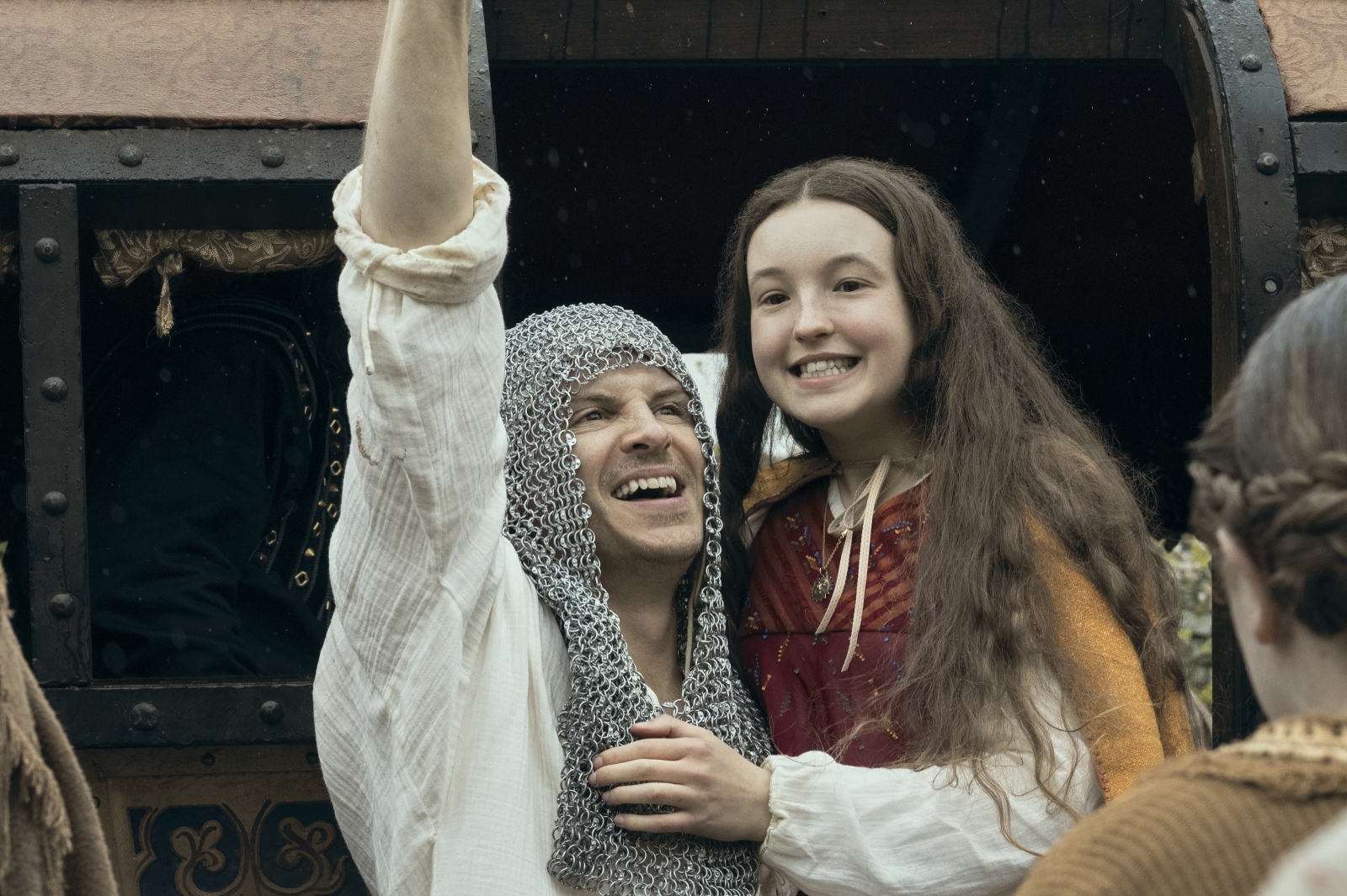 Birdy has a robust family, from her comically self-centered father Lord Rolio (an amusing Andrew Scott that strikes the right balance between farcical and meanness) to her proper and loving mother Lady Aislinn, and brothers Robert and Edward (Dean-Charles Chapman, who also had a role in Game of Thrones, and Archie Renaux, respectively). The shire has fallen on hard financial times (hilariously, it’s revealed that, in his hubris, Lord Rolio routinely ignored his financial advisor, one of the only Black people in the village, which, while it could just be coincidental casting, does somewhat work as a joke against white male privilege and their excess indulgences), meaning that Lord Rolio is anxiously awaiting the day Birdy has her first period and can begin to be shopped around as a potential suitor for wealthy persons of interest.