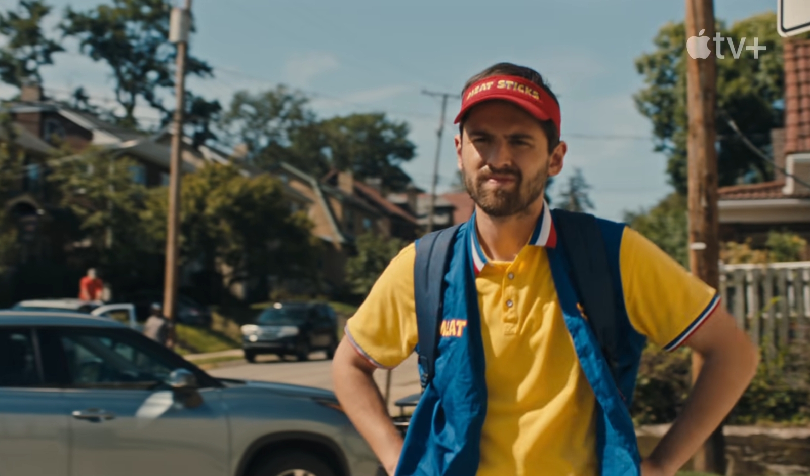 Similarly, the narrative doesn’t lazily construct Domino as an object of desire. It is interested in the struggles of being a single mom to a child with autism and how that cuts down on personal free time. She has a lawyer fiancé named Joe (Raúl Castillo), who frequently travels to Chicago for cases, but also has some uncertainty about what she wants in life, which is organically complicated further as Andrew ingratiates himself as both a charming person and reliable sitter for Lola. Again, none of this is toxic or harmful, and there are no antagonists here, just people navigating the messiness of love with endearing naturalism that mimics life. Meanwhile, Andrew works through his own emotions and how to handle the situation by periodically giving romantic advice to David, which is sweet even if there are some flaws in his steps that he will come to realize the hard way. He also doesn’t want to sell corndogs and liven up parties forever, and starts looking into a real job working with ALS children.