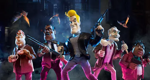 Though there’s nothing new about this kind of characterisation, in the context of a stop motion animation, it stands out as being a wonderful parody of action movie stereotypes. And the parodies don’t end there. Along with the trampires come a whole host of action/horror references and quips. Not one single minute goes by without someone getting brutally murdered, making a hilarious comment, or simply making an ass out of themselves.