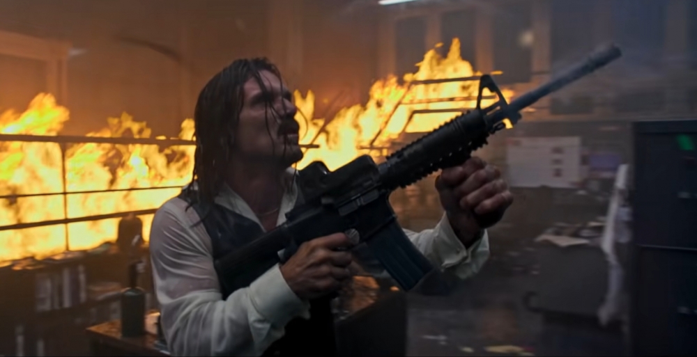 Surprisingly, there’s a more exciting third wheel in the form of police officer Valerie (Alexis Louder, turning in a gritty, ferocious, and resilient performance that ranks her right up alongside her two grizzled veteran co-stars and should earn her similar physical roles in the future), working at the station and finding herself further embroiled in the nature behind the arrests and long night. In a male-dominated field, she also holds her own with her counterparts, demonstrating immense knowledge and handling of firearms (it’s also noteworthy that there turns out to be a purpose to characters talking about different techniques), attitude, resourcefulness, and intimidation. Maybe it’s blasphemy to say, but if you’re coming for Gerard Butler and Frank Grillo, don’t be surprised if you leave shouting the praises of Alexis Louder, eager to see her get more action work immediately.