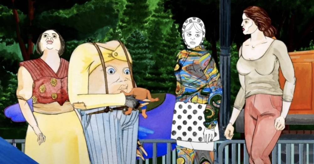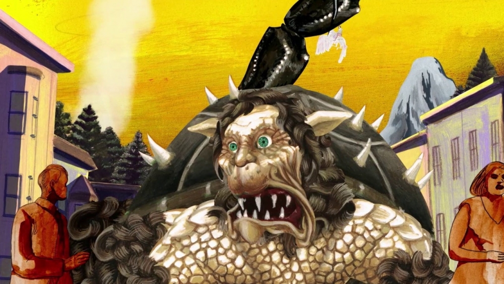 Even the art style is difficult to grasp, coming across as a tacky mess (especially during nighttime scenes or when the environments are utilizing gimmicks) which hurts to say since it’s hand-drawn in what appear to be computer-generated backgrounds. Sometimes the picture will resume a beautiful watercolor painting, whereas other times, it’s messy, offputting, and appealing hard to a particular crowd. Again, the opening 10 minutes sequence to Cryptozoo takes place at night, so between the muddled visual style and listening to a pair of free spirits (voiced by Louisa Krause and Michael Cera), get fully nude and talk about how they are the only ones that matter in the world, it set the stage for a relentlessly unpleasant assault on the senses.