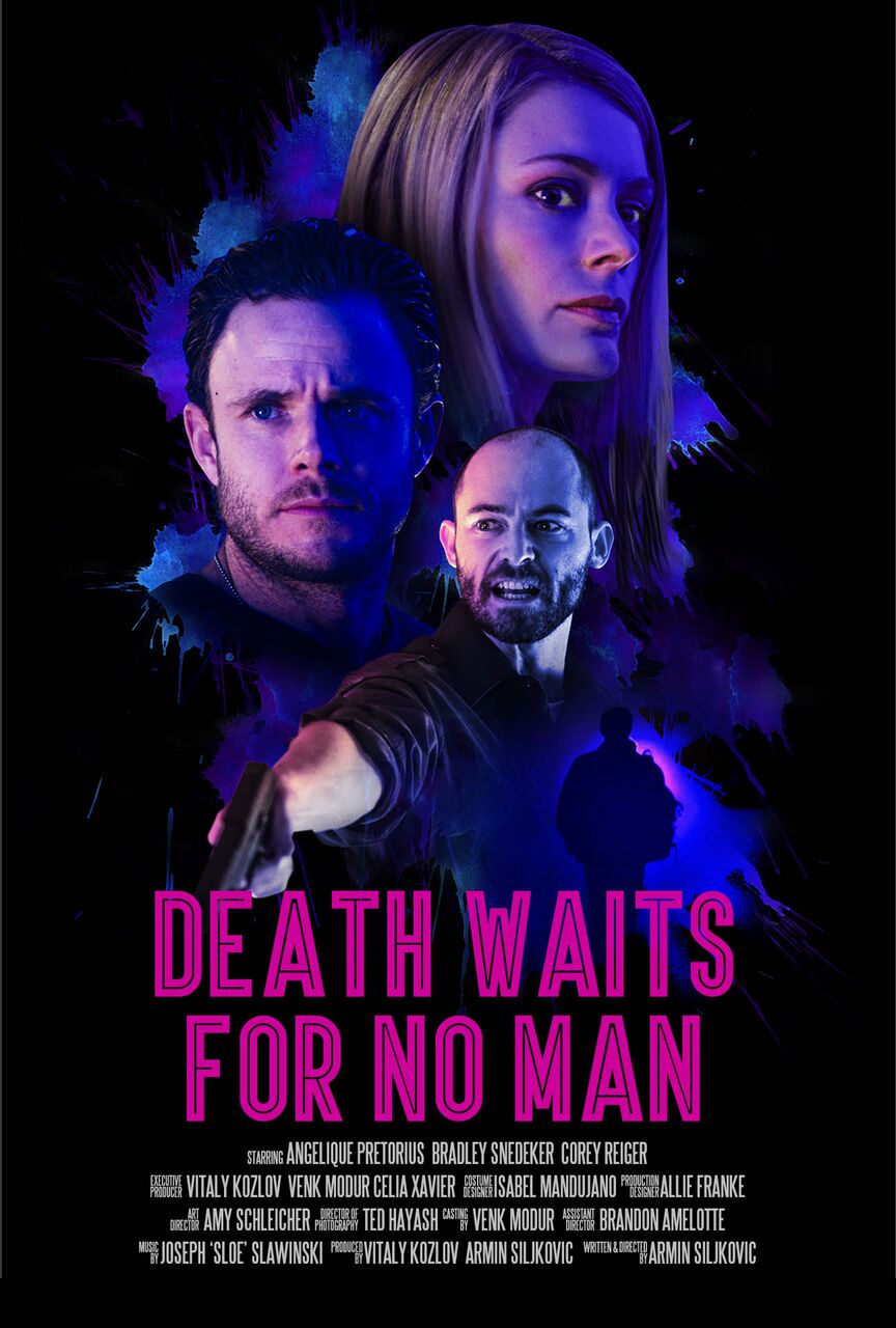 Where Death Waits For No Man succeeds is in its style. Lily is a neon art collector and Siljkovic uses the various colours to demonstrate the tone of each scene and there are a number of effective transitions that elevate this to more than a standard thriller. The score is also put together exceptionally well and the single setting utilises the space and the tension between the trio is elevated. There are no gimmicky camera angles or student film traits, just solid direction from a promising film maker.