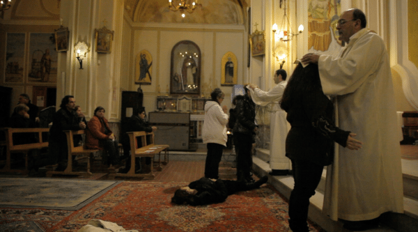 The exorcism itself appears to be something like a drop-in therapy session, with a number of different characters from different backgrounds introduced specifically through their connection with the church activity. Some are regular churchgoers and some are assuredly not, drawn to the sessions instead because, literally nothing else works. This kind of helplessness and often sad reality is counterbalanced with the dry Sicilian wit and humour of Cataldo, who brings out the reality of working in this social enterprise.