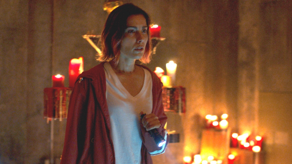 Holding the story together is the traumatized Carly (Carly Pope), still shaken and having nightmares reliving her mother Angela’s (Nathalie Boltt) arson. She also reconnects with a pair of estranged childhood friends (they all had a falling out after Angelo’s disturbing actions), Sam and Martin (Kandyse McClure and Chris William Martin, respectively) that lead the way to visiting the above Therapol facility to reluctantly test out the simulation and have a conversation with her mom. Again, these interactions play with reality and fantasy in ways that genuinely feel fresh for cinema (between the HUD display statistics for Carly and selective camera angles, Demonic comes within inches of taking on the form of watching someone play a survival horror game within a cinematic landscape) and, as a result of the unknown in terms of both storytelling and filmmaking techniques, suspenseful.