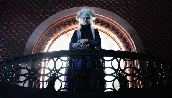 As they converse, flashbacks offer glimpses into Vlad’s journey across centuries as he searches for his dead wife’s reincarnation. At one point, he bites the neck of one woman after another in a preposterous scene where every woman surrounding them either doesn’t acknowledge what’s happening or looks on in horror, waiting their turn, resembling broken or straight-up bad video game AI. However, what truly sinks this section is that, in the present day of the timeline, the makeup effects, wardrobe, and prosthetics applied to Dracula are impressive yet give him an unintentionally funny appearance of an old woman. Other instances of costuming and production design are all around solid, meaning the quality is inconsistent and unpredictable from scene to scene.