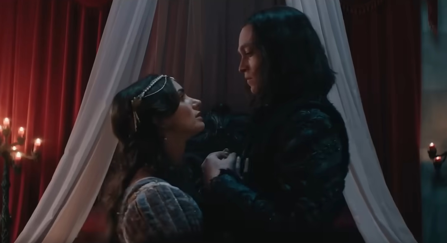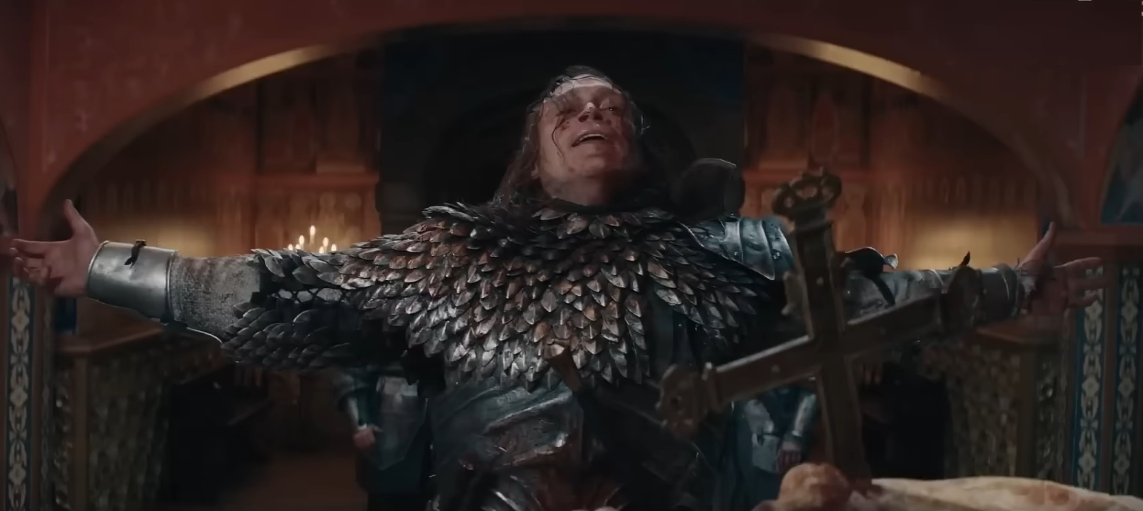 Opening at some point in the 15th century, Vlad the Impaler (Caleb Landry Jones) is madly in love with his wife, Elizabeta (Zoë Bleu). The only thing he asks of God is to ensure her safety when he is off slaughtering armies in his name. During a decently sized battle (especially given what budget constraints had to be in place) and a castle siege, Vlad’s beloved is placed in harm’s way, where she meets her demise at the exact moment he comes to her rescue. From that day forward, he doesn’t merely renounce his faith but murders the priest who blessed her safely, in turn making a wooden Jesus Christ cry.