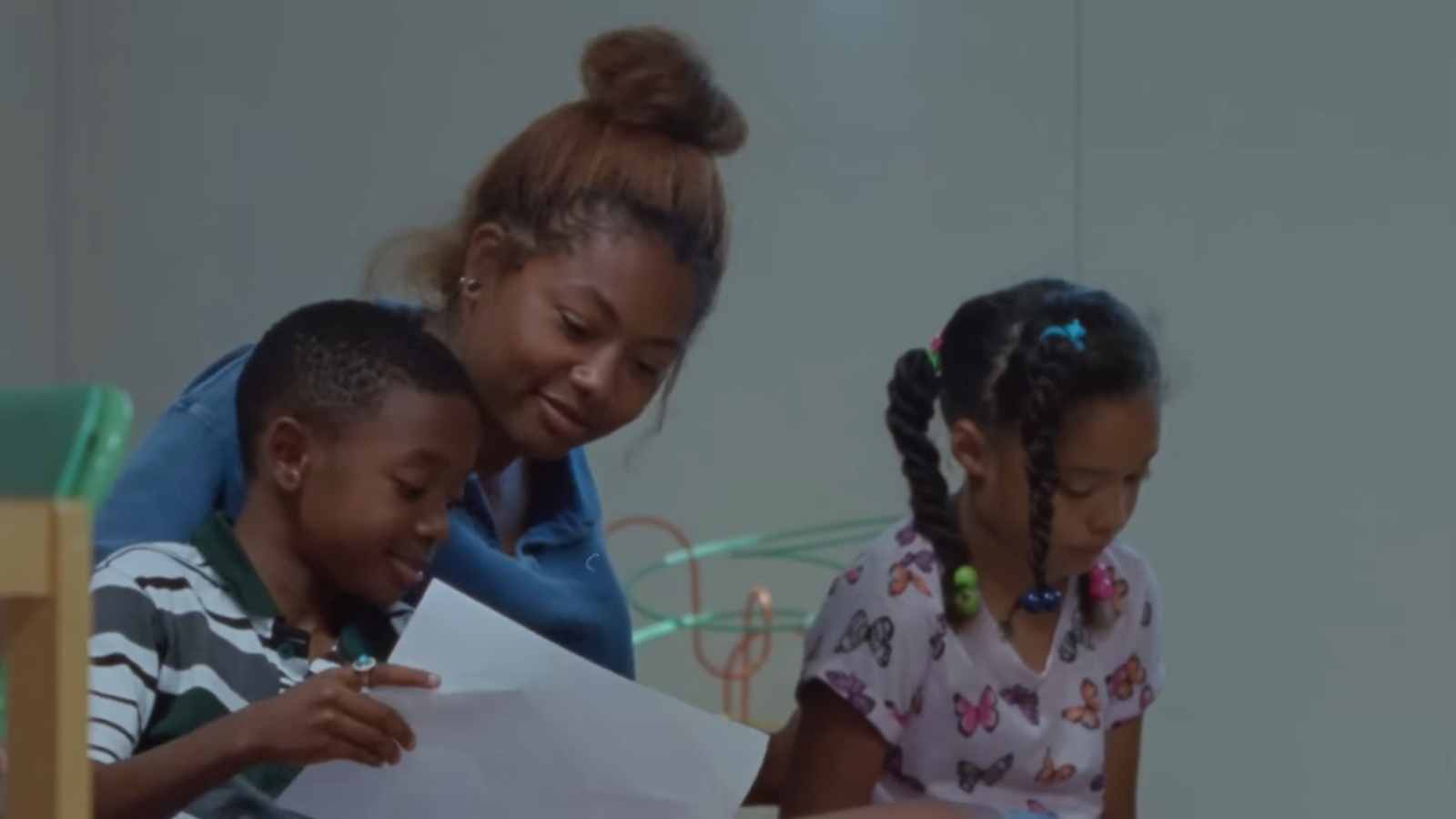 Tia Nomore’s Gia (perhaps wordplay on Gaia) is a 24-year-old woman who receives monitored visitation rights to her young children. They greet her presence differently, with one ecstatic to see her, hopeful that they can come home soon, while the other turns away from her, refusing to say a word, perhaps feeling abandoned or betrayed by her mother. Gia does have a court case coming up where she might be able to regain custody, provided CPS inspections go well, but she is also expecting another baby (and any day within the month, judging from the appearance of her baby bump).