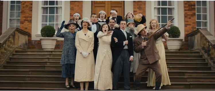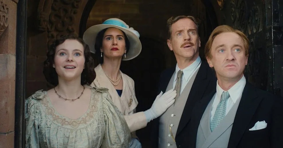 Centered on the aristocratic Davenport family, the film (there is a crowded writers’ room of several names, which would usually spell doom, but here feels as if everyone was on the same page about the craft, the tone, and humor) is about the roadblocks of ensuring Fackham Hall stays within their name. Lord Davenport (Damien Lewis) has no male heirs (his sons George, Ringo… you get the joke) are all dead, meaning that it’s up to one of his two daughters to marry a first cousin. Cue several jokes about incest and general women’s plights during the 1930s.