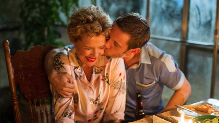 However, those are actually the flashback sequences, as in 1981 a separated Gloria and Peter reunite in his family home after she falls ill with indigestion problems (a cover-up lie to lessen the gut-punch of her breast cancer), and as one would expect it allows the actors to juxtapose the fervent highs of love with depressing tragedy. The altering timelines allow Jamie Bell and Annette Bening to develop further layers to their characters, both filled with pain expressed in different ways and also regret, for reasons I won’t spoil. Let’s just say that there is a nasty argument a little over halfway in the movie that winds up heartbreaking once the truth of what’s happening is revealed. The editing between present and past is executed in overly sentimental and clunky fashion, but director Paul McGuigan (helmsman of action blockbusters such as Lucky Number Slevin and Victor Frankenstein) always swiftly rebounds by immediately placing the affectionate couple into an interesting scenario revealing more details about their personal lives.
