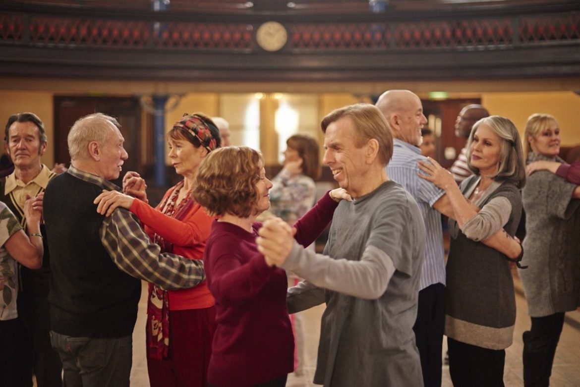 Truthfully, they succeed most of the time, but the script (Meg Leonard and Nick Moorcroft) and direction from Richard Loncraine are packed with narrative conveniences and genre familiarity to the point where everything feels hollow. Things are set in motion at an upper-class luxurious gathering where Sandra stumbles upon her husband Mike (John Sessions) full-on making out with another woman; the affair has apparently been going on for years. With nowhere to turn, she rekindles a bond with her sister Bif (Celia Imrie), butting heads at first over everything and anything while the audience waits for them to realize that despite ending up on different rungs of the social ladder, they are more alike than they think. Naturally, Sandra is also reminded of her love for dancing, slowly noticing that she gave the passion up, along with many others, as she settled in to being a trophy wife for essentially a privileged rich jerk. Sandra also befriends Charlie (Timothy Spall) through Bif, who is deeply hurting on the inside as his wife of decades is stuck in a nursing home and no longer recognizes him; these dramatic beats are actually the best aspect of the film as the depiction of both deteriorating brains and emotional pain are affectingly touching.