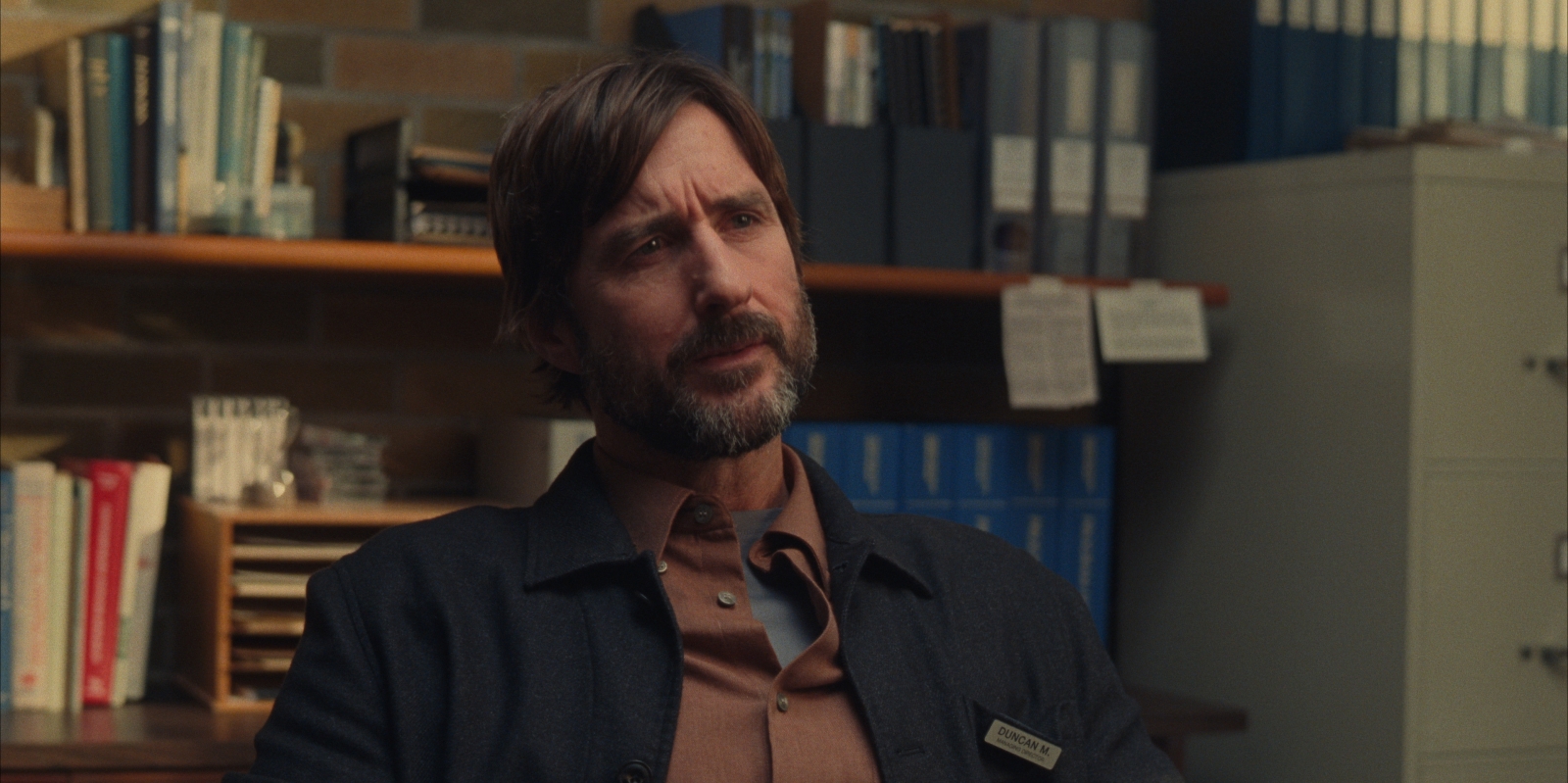 Setting aside the world-building barriers preventing me from fully getting involved in the premise, Fingernails centers on Jessie Buckley’s Anna, a woman who has matched with Jeremy Allen White’s Ryan but is starting to question that love, considering their relationship has become somewhat distant. Initially searching for a new job teaching elementary school, Anna decides to go behind Ryan’s back and take a job at the Romance Institute run by Luke Wilson’s Duncan, pairing her with Riz Ahmed’s Amir, overseeing exercises between patients looking to strengthen their bond before taking the test.
