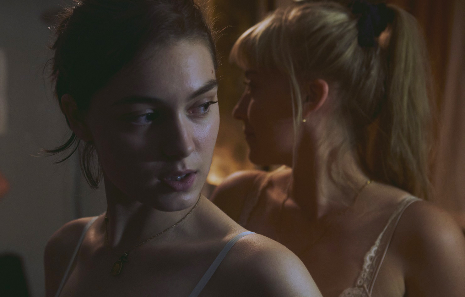 Anamaria Vartolomei is literature student Anne Duchesne (presumably, a stand-in for the novel’s author) rooming with a pair of university girlfriends. Of the many activities and hobbies they share, flirting with guys at a bar happens to be one. Soon after, one of the more sexually curious friends confesses to being a virgin while also putting on a demonstration of grinding using a pillow for a man’s body. Many of the women frequenting this bar appear to crave that intimate experimentation yet are also terrified to follow through.