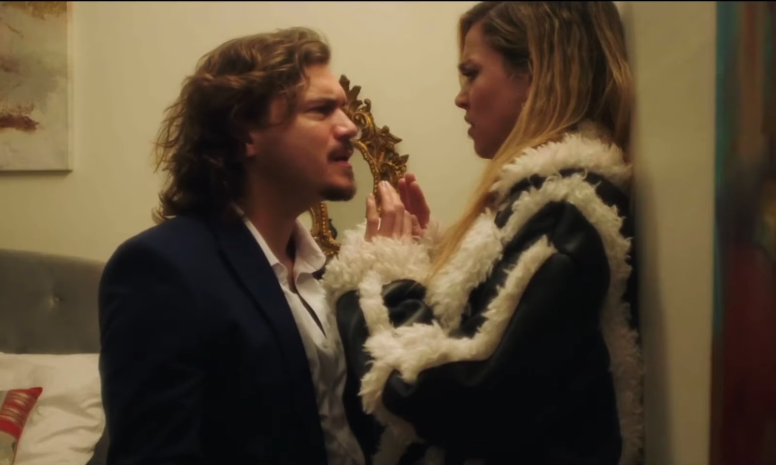 Given the exhausting amounts of character backstory, there is no shortage of suspects, with the script first introducing Adam (Emile Hirsch, giving a boisterous, over-the-top performance) tearing into his girlfriend Addie (Dylan Gelula, delivering one of the only passable turns here.) He lobs ugly comments about her lifestyle choices, career ambition, and weight (yes, you read that correctly) before running off to a public bathroom to text her best friend/cousin Helen (Matilda Lutz) that he wants to be with her and is breaking up with Addie. Adam can’t even do that right, as he accidentally sent those texts to Addie, setting off feelings of betrayal from her boyfriend and cousin.