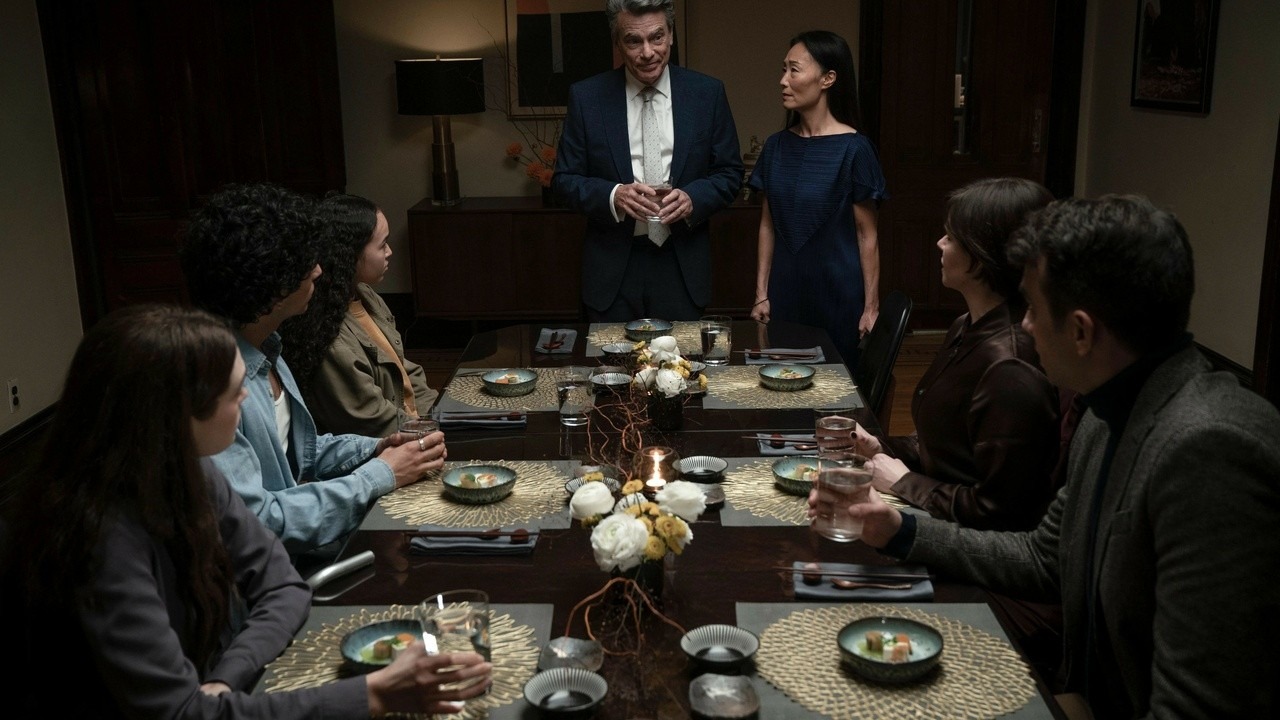 This is frustrating since, again, the hook grabs attention. Charles is a former celebrated news reporter who financially benefited from years of society ignoring climate change, among other pressing issues. Somewhat of a failure as a parent and husband, currently with a new partner named Dawn Kim (Uni Park), who has faced racism at extreme lengths of having her restaurant burned down (the script also mentions that for whatever reason, Asians, in general, have been made public enemy number one for the current disastrous state of the planet, without ever really expanding on that.) Charles cares deeply about his legacy. He is also looking for some form of redemption, so he signs himself and Dawn up for the euthanasia process while inviting his four adult children (one adopted son) over to say goodbye without explaining what the reunion is about.