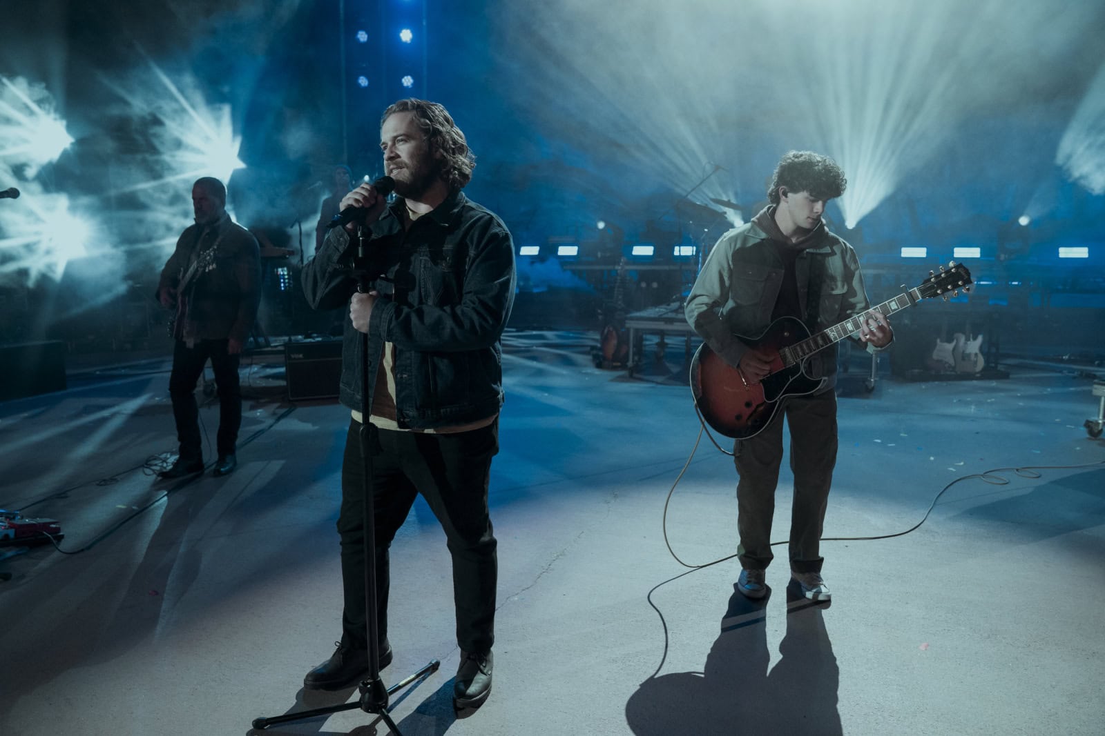 To be clear, yes, it is understood that this is based on a true story and that these individuals presumably did interact this way, which eventually led to another hit song by Bart, written in collaboration with Tim. However, as a film (and one that already spends roughly a third of its running time letting this ensemble perform songs), it is overstuffed and clunky, never allowed to settle into an emotional rhythm that feels grounded. There are corny subplots about shooting stars and fears of needles, although they don’t compare to how off-putting it is that Tim, for some inexplicable reason, finds humor in feigning to the band that his cancer is worsening. At one point during a brief hospital stay, he jokes that he tried to get the nurses to have the nearby machines show that his heart rate was flatlining when they walked in, simply because he thought it would be funny. It’s not. It is almost sociopathic, yet played cute.