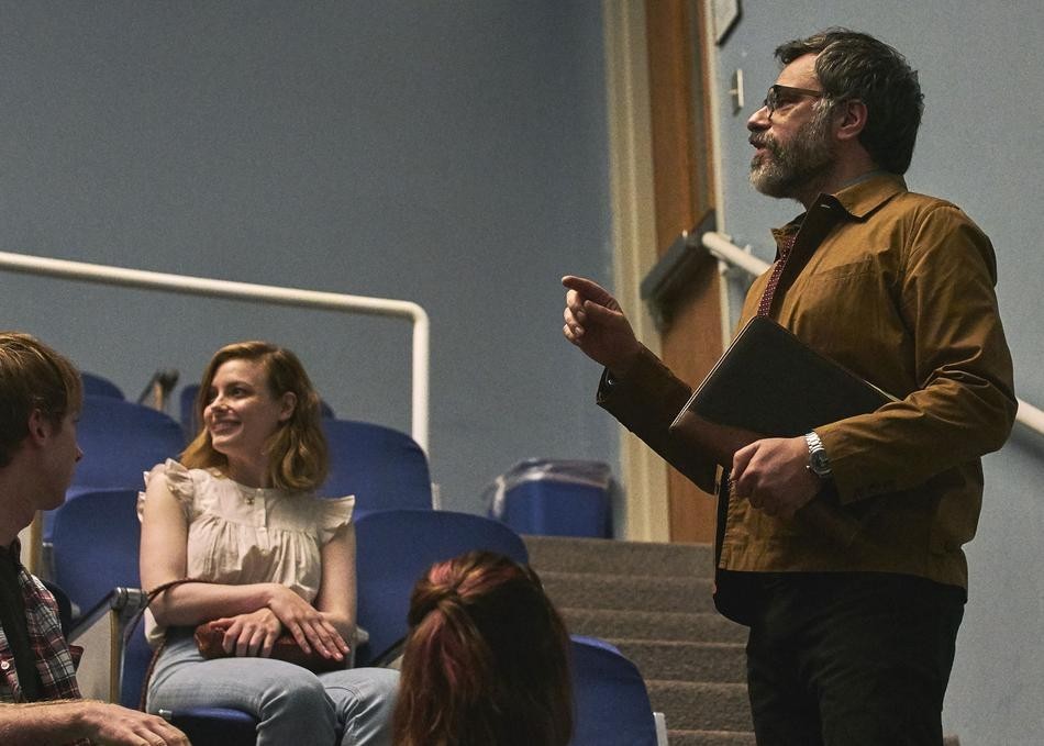 From there, Kate begins reconnecting with her former literature professor and first mentor David (Jemaine Clement) who encourages her to sample a portion of her new novel (a love story fixated more on restraint than passion) as a live-reading event. One of David’s students, April (Hannah Marks) is impressed by Kate’s writing and accomplishments, whereas Kate one day listens in on the classroom and is equally impressed by April’s provocative poetry. Simultaneously, Kate checks in on her old college home which is now occupied by a number of students, eventually developing a rapport with them, attending parties, stoner trips to the beach, and more. It’s worth mentioning that for her duration back home the college also appoints her a driver (Rammel Chan) that receives some of the film’s more amusing pieces of dialogue.