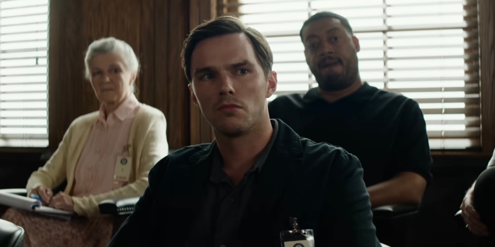 Once the doozy of a premise reveals itself to be that one of the jurors, specifically #2 named Justin (Nicholas Hoult), a magazine writer expecting his first child and married to Zoey Deutch’s Ally, recognizes that the case he is serving is one he is directly involved in, things become tense and humorous but compelling and appealing to a mainstream audience or true crime obsessed crowd, begging the question of wondering what Warner Bros. is thinking releasing this in such a limited rollout that has no plans of expansion. Naturally, guilt immediately consumes Justin, with Hoult outstanding in the role, especially as the narrative gradually illuminates more about his character and how he ended up at a roadside bar near where the crime was accidentally committed.