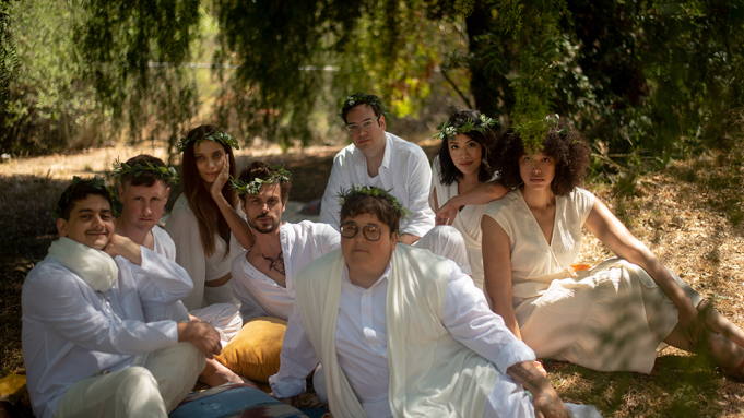 But all this fine work wouldn’t quite sing without the exceptional efforts of the ensemble cast. Front and center, Matthew Gray Gubler relishes ripping through the script’s doofy voiceover and is no less appealing a presence on-screen, especially when performing opposite Angela Sarafyan, who as his feisty screen wife is a sexy-funny delight. The pair preside over a motley crew of oddball followers, each bringing a distinct personality to their characters no matter how scant their screen time.