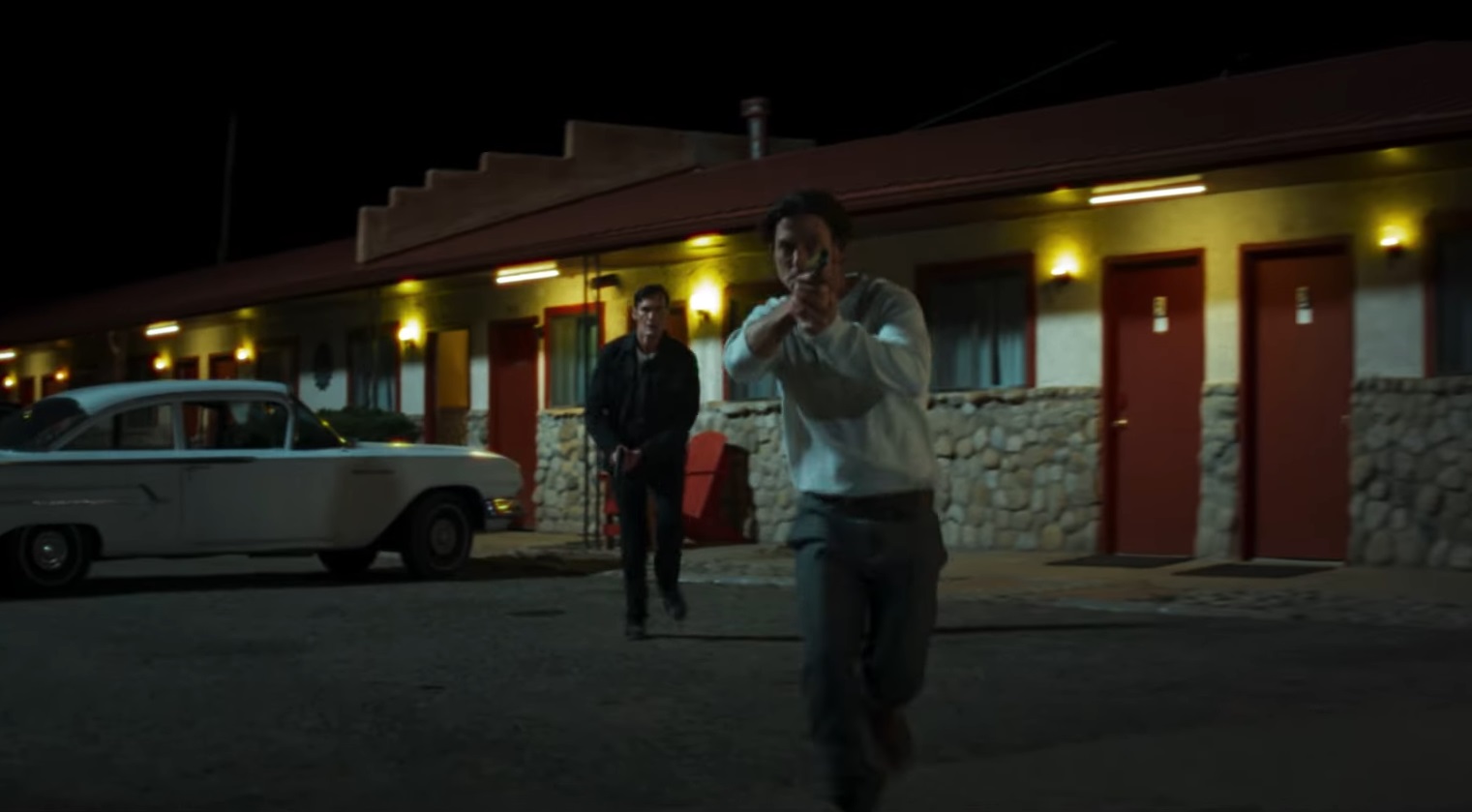 That’s the small-fry objective in their two-part mission into the middle of nowhere in Nevada. Set at an unspecified time in the 1960s (a great deal of what’s going on is associated with the specifics), Frank and Tommy have also been ordered to deliver an arrest warrant to a murderous land grabber named Benjamin Bonney (Dermot Mulroney), who, along with his violent sons, is going around terrorizing locals into lowering land prices he believes to be rightfully his. Aside from the danger involved with entering that territory, the job sounds simple enough, at least until it turns out the arrest warrant has mysteriously been lifted.