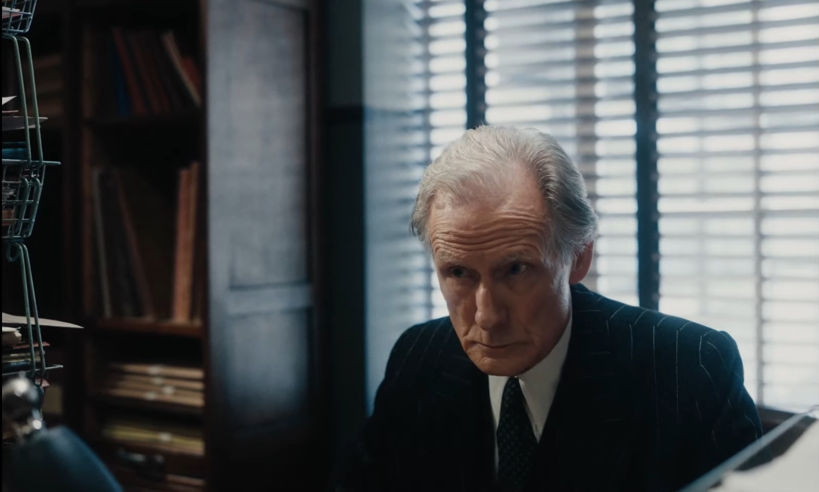 Yet what ultimately makes Living worthwhile is the sharp efforts of its central cast. Bill Nighy, who cuts a naturally spectral figure, is perfectly cast as the successor to original lead Takashi Shimura. The characters are certainly not identical, Nighy being around a quarter-century older than Shimura was when he took the part, yet Nighy is exceptional as a man pathologically bereft of affect all while staring down the barrel of oblivion.