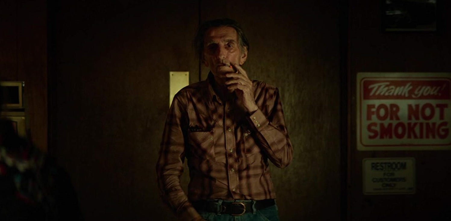 He’s surrounded by a Greek chorus of secondary characters. We meet the four legged one at the start of the film, in a desert landscape just outside the one horse border town where he lives. In the corner of the shot, a tortoise lumbers towards a bush but doesn’t seek shelter: it emerges from the other side and continues on. We meet him again at the end of the film. He rejoices in the name of President Roosevelt and belongs to Lucky’s friend and drinking buddy, Howard (David Lynch) who is devastated by him going AWOL. Other regulars in the bar are its owner Elaine (Beth Grant) and boyfriend, Paulie (James Darren). In the diner where Lucky quaffs coffee every day is the manager, Joe (Barry Shabaka Henley), waitress Loretta (Yvonne Huff Lee) and others who drift in and out. Ron Livingston’s lawyer for one, and Tom Skerritt as a WWII Marine. Their stories, either in just one scene or throughout the film, intersect with Lucky’s and they are all as aware as he is that his time is nearly up.