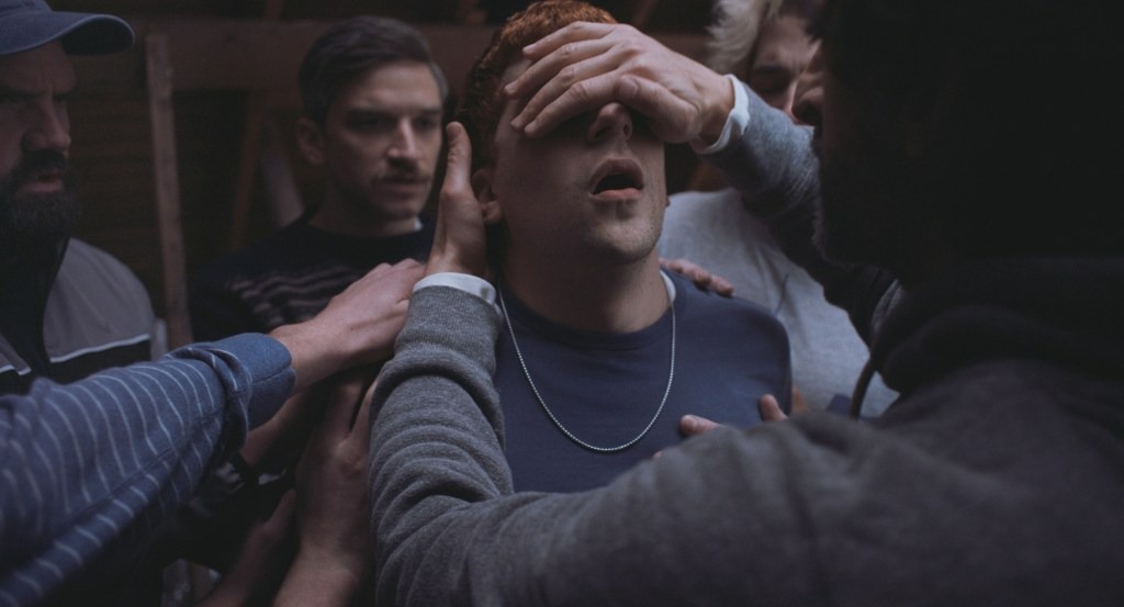 Again, this goes back to Jesse Eisenberg’s uncomfortable performance, leering at male bodybuilders while working out at the gym, seemingly unable to mentally accept that he is sexually attracted to men. He also still hasn’t dealt adequately with abandonment trauma from his father walking out on him on Christmas as a child, which explains why he has convinced his partner, Sal, to give birth to their baby even if he doesn’t seem financially stable enough to support them, working as struggling Uber driver who is morally comfortable pocketing left behind items from passengers so he can sell them for quick extra money. The fact that Dan and everyone in the masculinity group refer to themselves as Dad only makes Ralphie an easier target for indoctrination.