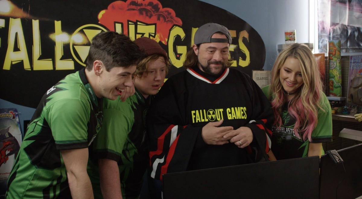 It’s often silly, though when it plays things a little straighter, we get a few standard tropes from this kind of film (Max has to learn to be team orientated and responsible, and also has to deal with local jocks etc). The key to the film working though, lies in a general sense of fun everyone appears to be having and there’s a good sense of camaraderie in the cast. Tom Plumley is a likeable lead as Max, whilst Hassie Harrison is the cool and sassy gamer girl who makes her trope character likeable and engaging. The established cast members like Martin Kove, Lin Shaye and particularly Kevin Smith enjoy their roles and boost the star power of the film.