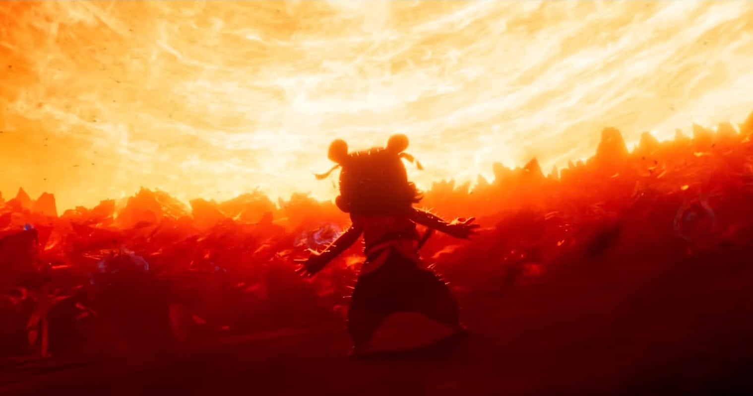 However, what further elevates Ne Zha II (much like its characters fighting in the sky) is its eruption into all-out action and war, with director Jiaozi and animators frequently using striking shots from afar, capturing swaths of armies charging, packed in such a quantity that the factions resemble dusts of paint colliding into one another. One or two shots in particular are worth the price of admission alone. Then there is the exceptional artistic design, whether it be those foot soldiers or the distinct key characters and their eccentric fashion/weapons. It’s also all grounded in emotion that, although the film might not be fully decipherable, is still felt and nearly as powerful as the comically absurd, colorful, over-the-top, dizzyingly breathtaking one-on-one battles that leave each character breathless.