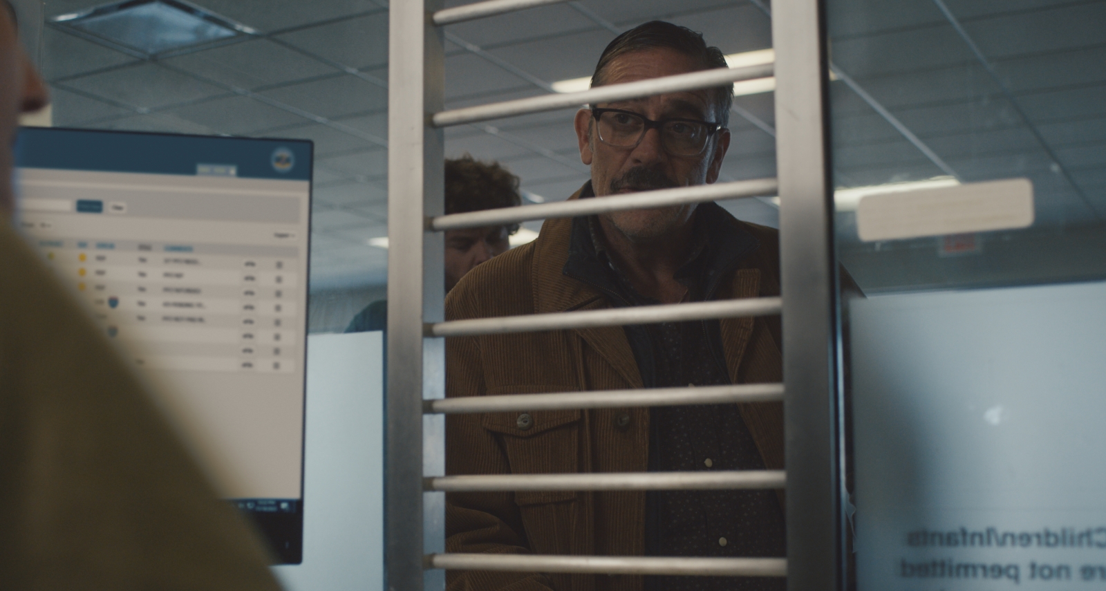 Desperate for someone to drive him around and dealing with the horror he witnessed, Simon pleads with his neighbor, Ed Deerman (Jeffrey Dean Morgan), a former community college campus security guard currently without much purpose in life, to assist him. Initially disinterested but inevitably forced into tagging along, partially out of pity, Ed isn’t sure if he believes Simon but puts his knowledge to work, suggesting that maybe he got one of the numbers on the license plate wrong, such as mistaking an S for a 5. The dynamic here primarily includes condescending banter toward Simon that we are seemingly meant to laugh at, which is, again, unfortunate given that this is someone who is mentally ill. Even the following sequence, set in a DMV, sees Simon having a breakdown, accompanied by a soundtrack featuring a corny, sinister voice that is far too generic and simplistic for a movie tackling such illnesses.