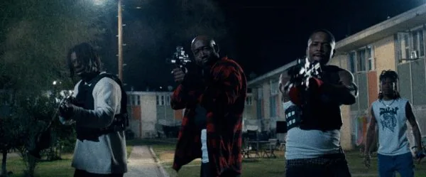 That’s all well and good with a tantalizing horror concept ripe for sociopolitical commentary, except Ryan Prows and his crowded team of screenwriters (Tim Cairo, Jake Gibson, and Shaye Ogbonna) seemingly have no idea what to do with it or say that hasn’t already been made clear from the first 15 minutes. This is most evident in the three-act chapter structure, which switches perspectives from LAPD officers to night patrol to the project housing that becomes the battle stage, where it becomes confounding who the protagonist is supposed to be.