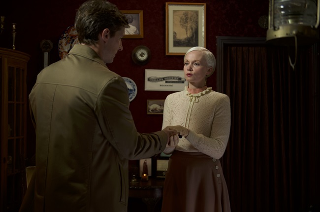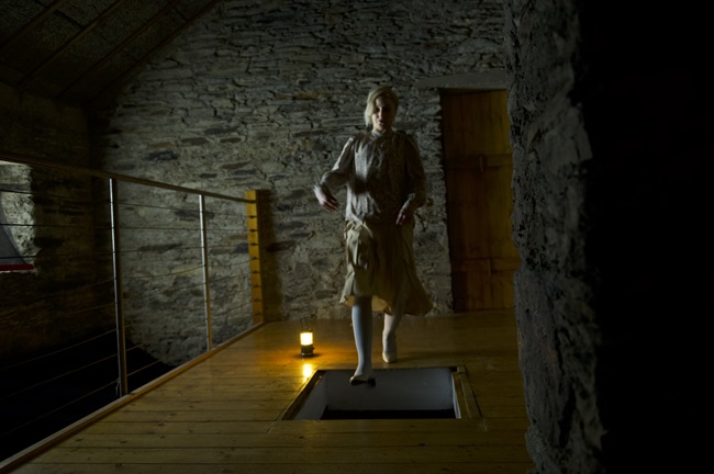 The plot to Oddity feels like an episode of Hammer House of Horror or Tales of the Unexpected in that a blind medium who also runs a shop full of allegedly haunted objects – you see? – is seeking the truth of who murdered her sister. Said medium is Darcy Odello (Carolyn Bracken) and her sister Dani (also played by Bracken, but in a wig) was married to Ted Timmins (Gwilym Lee), the head doctor at an asylum for the criminally insane – of course – and during the first act we do get to see how Dani was killed, but not by whom, although it is most likely it was an escaped patient from Ted’s hospital because he was at the Timmins’ secluded country house the night of the murder.
