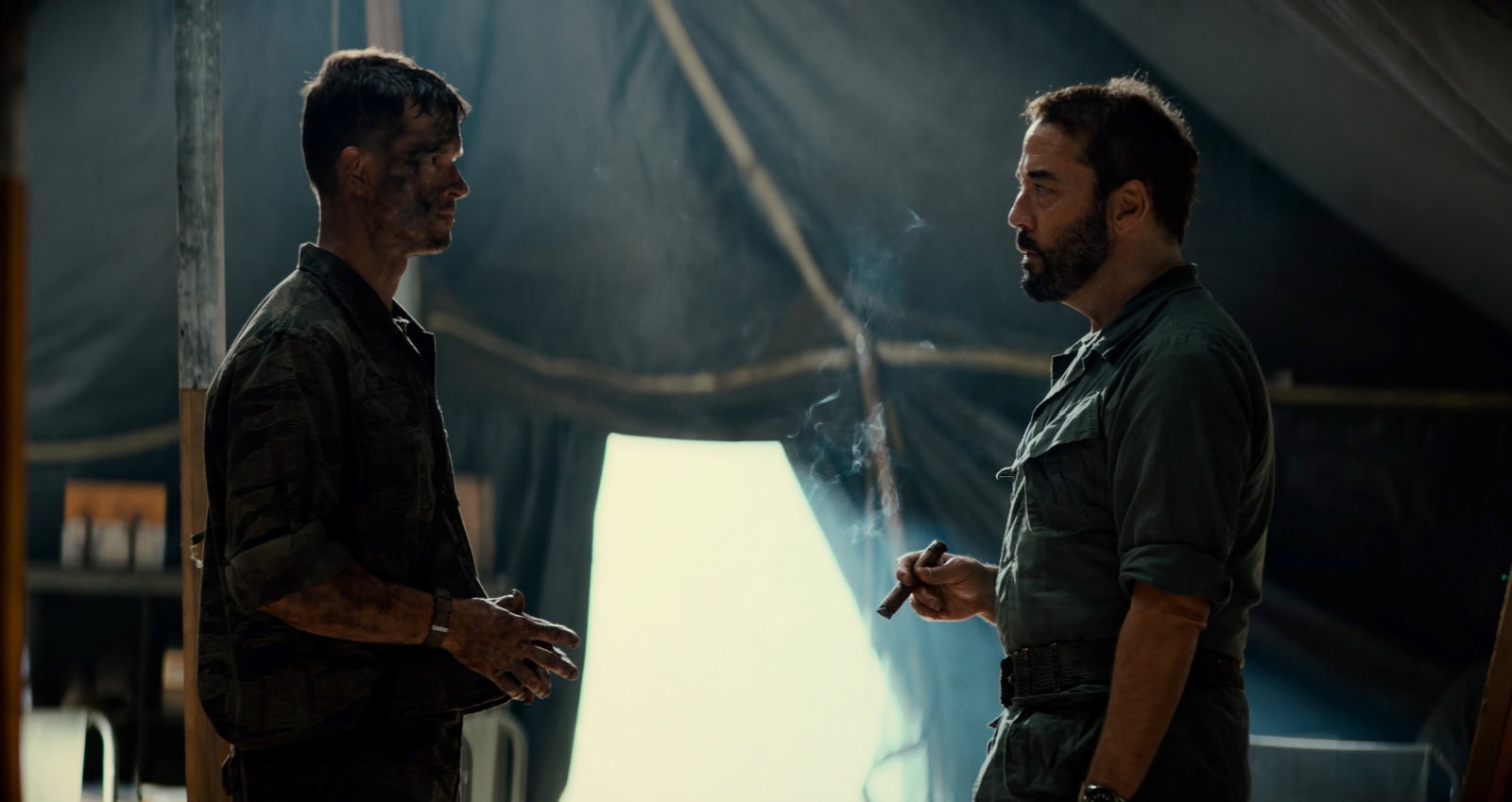 When the dinosaurs show themselves, Sparke resists the temptation to treat the moment as a punchline. The first attack is shot with a kind of grim conviction, grounding the absurdity in sheer panic. From there, the film reveals its triptych shape: a Vietnam thriller; a survival adventure; and an eventual dive into the Cold War science-fiction explaining how these animals crossed 65 million years to arrive in a live-fire zone.