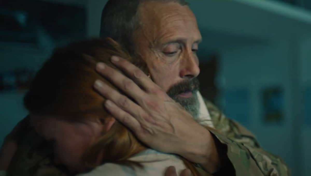 It all started with a stolen bike. Teenager Mathilde (Andrea Heick Gadeberg) has plastered yellow sticky notes all over her bedroom wall in the formation of a flowchart, analyzing the consequence of every action that led to a tragic train explosion that left her unscathed but took the life of her mother. In a nutshell, the stolen bike delayed Mathilde from getting to school on time, which caused her mom to drive her, but this also made her present for a phone call between her supportive mother and her ice-cold soldier father Markus (Mads Mikkelsen, whooping an ungodly amount of ass here) where he revealed he’s probably not coming home until another three months, resulting in skipping school together and taking the aforementioned doomed train ride.