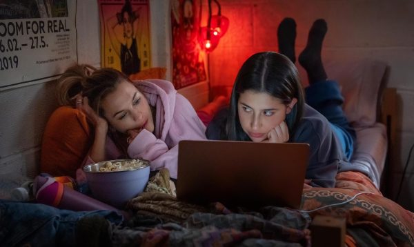 Where Levack remains sharp is in observing social mechanics. The constant mediation of experience through screens — Devon hesitating on putting the cost of a Florida Spring Break trip on her parents’ emergency credit card when it’s one press away, or witnessing her brother be publicly outed watching on a video call feel timely. Others like, Devon entering her dorm to find it empty, punctuated by Celeste’s arrival is staged perfectly with precise control of tension and release. Or when she takes on karaoke set to “Driver’s License” and “Mr. Brightside” and comes into her own. These are more timeless but thanks to Levack they land cleanly, and bridge emotional gaps the script doesn’t fill in. In those moments Levack shows a clear sense of rhythm and audience feeling her previous films weren’t concerned with, and they point toward a more considered film had it not been a Happy Madison production.