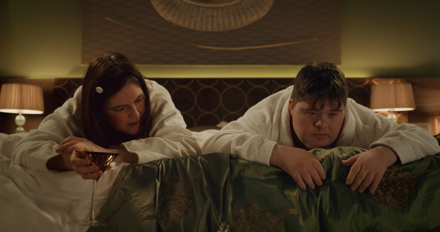 Sophie has severe epilepsy and is looked after in a care home. Larry has Down’s Syndrome and lives at home with his mother. The two meet at Sophie’s care home where Larry helps out. They are shy around each other, but know that what they feel is real. Aided and abetted by Tom (Robert Doherty) the care worker, they manage to get away from the cinema going group, and get to spend some quality time together in a hotel room.