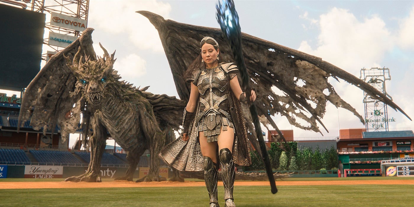 However, attempting to explore both characters simultaneously severely hampers the overarching narrative, which involves Anthea secretly being the third sister to goddesses Kalypso (Lucy Liu) and Hespera (Helen Mirren), a trio that has, due to an honest mistake by Shazam during the first film’s climactic battle, have broken their way into the human realm and are searching to take over in differing ways. It is monumentally deflating watching a lighthearted blossoming friendship between a disabled teenager searching for his identity and his crush morphing into something associated with the sealing of magic and destroying an entire world. Anthea remains the most levelheaded of the power-hungry sisters, even willing to assist Freddie for being kind to her in his world, but aside from giving Rachel Zegler more to do than be a love interest, their subplot loses all momentum and loses its distinct personality.