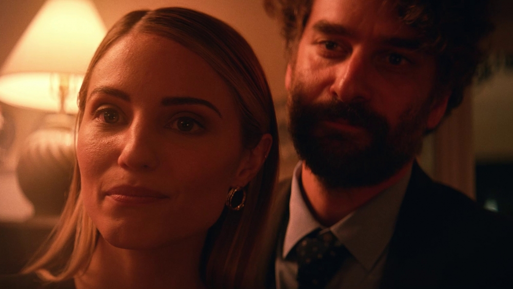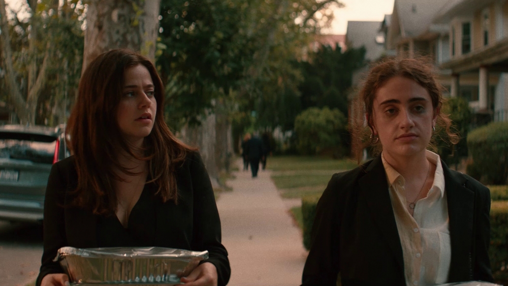 The aforementioned young woman is Danielle (Rachel Sennott) who, as the movie begins, is having sex with her sugar daddy Max (Danny Deferrari). Once she has her clothes back on, she travels to a shiva with her traditional parents Debbie (Polly Draper) and Joel (Fred Melamed), who of course have no idea how she earns her money. She’s warned against spending too much time with former girlfriend Maya (Molly Gordon), but soon forgets about that awkwardness and that of over-bearing family members when Max shows up. Minutes later, his businesswoman wife Kim (Dianna Agron) arrives with their daughter.
