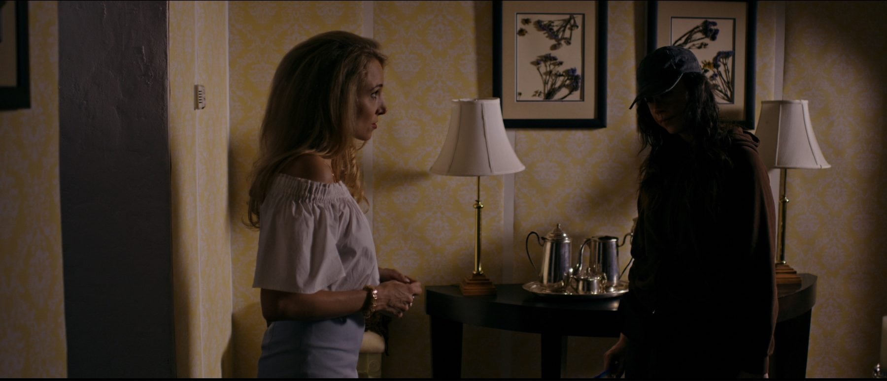 Knautz and cinematographer Joshua Allen present scenes in long, smooth shots that track characters as they move around rooms and down hallways. Rather than chopping up these sequences Knautz lets them play out. The lingering style helps build a sense of creeping unease at odds with Alice’s made up appearance and the colorful upper middle-class surroundings.