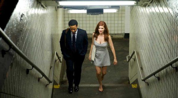 From there, Clay boards the subway home to prepare to attend his politician friend Warren’s (Aldis Hodge) fundraiser, where he will give a speech. It is on that ride where he encounters the racially insensitive but seductive Lula (Kate Mara), who somehow seems to know everything about him. She also plays mind games, telling Clay that everything she says is a lie. It’s also worth noting that she does all of this while offering him apples, in what has to be a case of biblical allegory so on-the-nose that one can’t help but cringe while watching it (this also serves as a reminder that not everything translates well to cinematic form). Opposite her, there is also a strange encounter with a mysterious woman (Sally Stewart) pleading with Clay not to go down this path and to stay true to himself, but it is a nearly non-existent, thankless role that only adds to the underdeveloped feeling behind everything here.