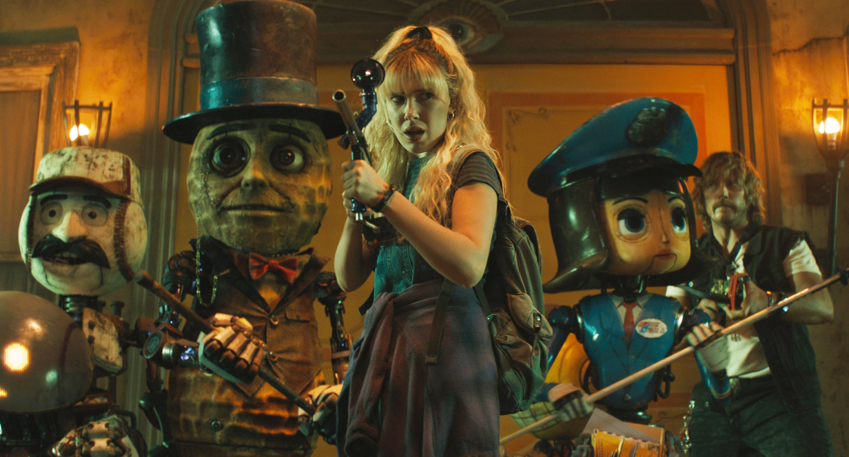 There are siblings with a sad backstory seemingly meant to be the “heart” of the story (quotations necessary because, in actuality, there is no heart here), mascot robots serving up an onslaught of quippy comedy with child friendly delivery and voiceover performances yet foul language, a burnout disgraced soldier dressed like a rejected member of a ’90s rock band walking the line between selfish and heroic while played by a Marvel alumni (presumably to bring in some of that audience), a barrage of songs and piano covers from that era, brief traces of social commentary implying overworked robots as comparable to other less fortunate marginalized groups, a supposedly world-ruining war between those robots and humans that only has time in the prologue to run through explaining with such little efficiency and clarity that several details about this alternate reality are muddled, the Planters Peanut as a revolutionary motivating figure for the robots (something I thought was a joke until it becomes clear that it’s an actual dramatic component of the narrative) all crammed in here seemingly to ensure that there is something for everyone. That’s also too many things, as this is a five-alarm fire to anyone with eyes and ears.