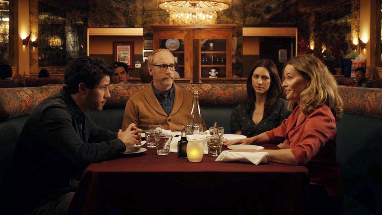 For a film about returning home to Cleveland for a funeral, director Robert Schwartzman’s The Good Half is surprisingly busy. It’s also not meaningful since the script from Brett Ryland also paints in broad strokes. On the flight home, Nick Jonas’ Renn Wheeland (the character names are almost as chaotic as the film’s questionable tonal shifts) meets young therapist Zoey (Alexandra Shipp), heading to Cleveland for a work-related convention. Even though there is some chemistry there, Renn is too closed off and hurting even to begin contemplating therapy as a useful and productive tool to better himself. The greater frustration is the simple question of why this film about grieving and mourning within a dysfunctional family (more on them soon) even needs a love interest. Surely, there is a more naturalistic method of suggesting this guy needs some therapy.