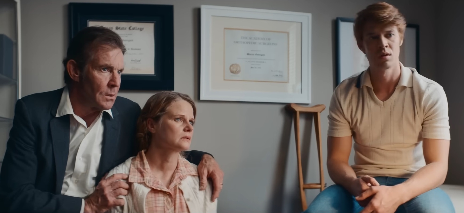 Ostensibly about Rickey Hill, a disabled baseball prodigy suffering from degenerative spinal disease and leg braces disallowing him from fully rotating when swinging a baseball bat (played by Jesse Berry and Mason Gillett as a child and Colin Ford as a high school senior, all of whom are serviceable in the role), The Hill can’t help itself from often leaning into faith-based territory focusing on the boy’s pastor father James (Dennis Quaid). While he doesn’t mind Rickey successfully and enthusiastically tossing rocks into the air and smacking them with a stick, he has no interest in allowing his son to pursue his lofty ambitions of joining Major League Baseball, choosing to believe that God’s will is that he will follow in the same preaching path.