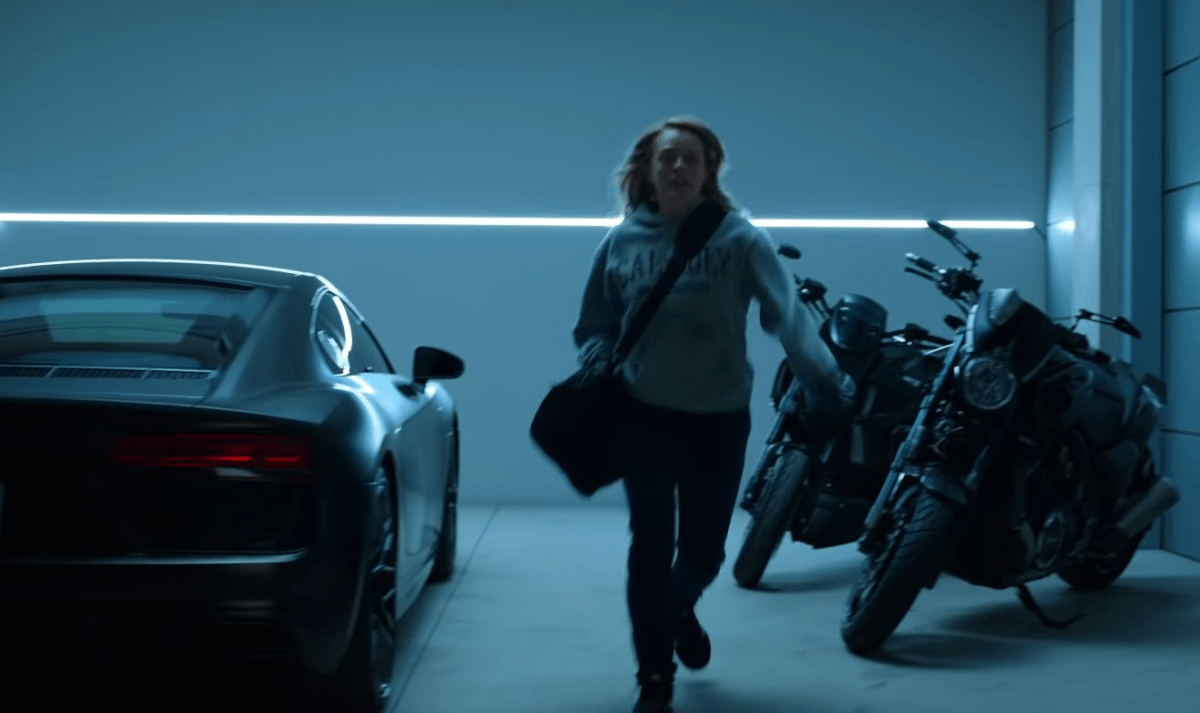She’s fleeing from her controlling boyfriend (The Haunting of Hill House‘s Oliver Jackson-Cohen), who we’re introduced to with his arm gently cradling her, like a hair-trigger bear trap, primed to go off should he sense her moving. It generates a feeling of unease and burgeoning dread upon which the film is masterfully built.