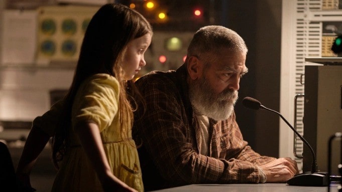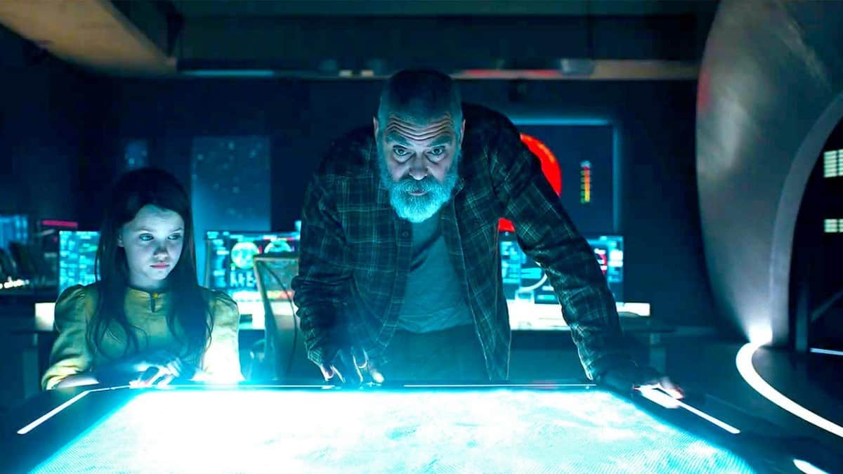 It only gets worse. George Clooney plays scientist Augustine Lofthoust (how is that for some word salad) who seems to not be evacuating with the rest of the crew in the Arctic Circle for reasons to do with blood transfusions and possibly a desire for loneliness. He’s also watching over spaceships incoming back to earth and must warn them that it’s no longer safe and to turn around. At the base, he stumbles across a left-behind child named Iris (newcomer Caoilinn Springall) who, and get ready for another aggravating cliché, is unable to speak.
