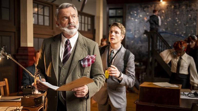 Paul impresses Humphrey upon realizing that his office wallpaper is a map of London, proving potential usefulness in locating the lost portable door. As mentioned above, Paul befriends Sophie (also applying for the internship), who starts enjoying things such as coffee and jazz music that she had mentioned not liking. Unfortunately, both of them are bland characters with even weaker chemistry. The further Paul digs into what’s really happening, Humphrey’s right-hand man Dennis Tanner (Sam Neill, also chewing the scenery), insists on staying out of it.