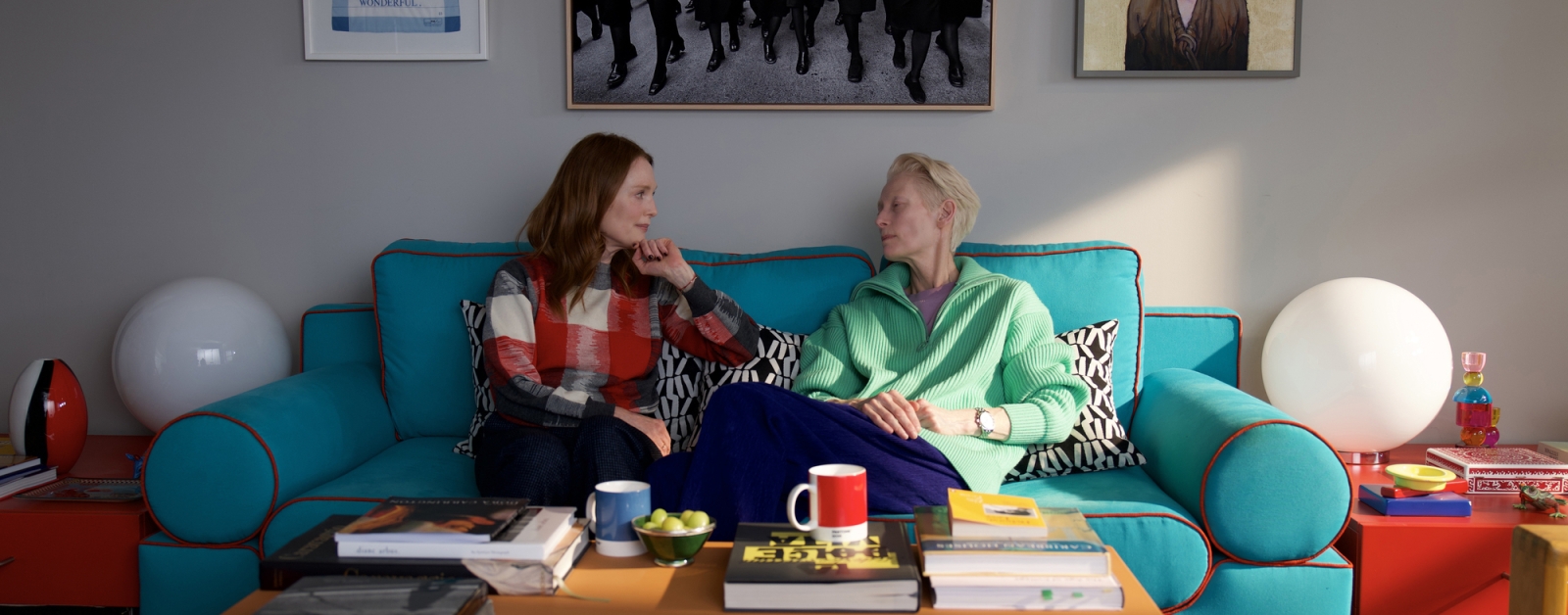 In Pedro Almodóvar’s first English language feature, The Room Next Door, Julianne Moore’s Ingrid is afraid of death, so much so that the author’s latest book is about not being able to accept that it’s real. Tilda Swinton’s Martha has cervical cancer, undergoes chemotherapy, has a life expectancy of less than a year, doesn’t feel compelled to keep fighting and live much longer, and is ready to die, having gone as far as ordering a euthanasia pill off the dark web. The only problem is that she would like someone in the titular room next door of the vacation home where she plans to end her life inside on her terms. So far, she only has rejections, but that changes once Ingrid, a longtime estranged friend, gets word of her illness and visits the hospital. She’s terrified of death but bighearted enough to help out a friend.