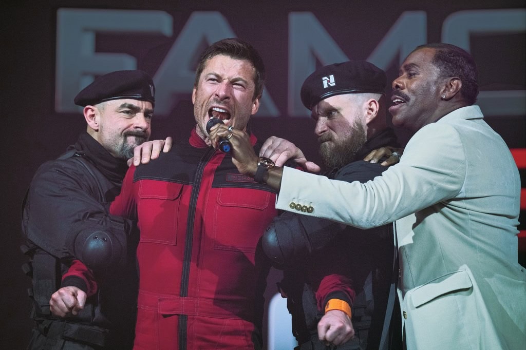 Naturally, the sociopolitical action-comedy centers on the one played by budding blockbuster star Glen Powell, who embodies the third type of character described above. One also gets the feeling that the other two contestants (Martin Herlihy and Katy O’Brian) would have allowed for a story that better fits Edgar Wright’s style and sensibilities as a filmmaker. At the very least, the actors fit their roles. In contrast, Glen Powell is distractingly playing the angriest man in the world (another character actually says this to him early on), despite exuding nothing but pleasant charisma behind imposing physicality and a mountain of muscles. Whenever disgruntled and frustrated slum resident Ben Richards (Powell) expresses anger, it’s unconvincing and forced, as if it’s the furthest personality trait from the real person. Yes, that’s part of acting, but the convincing part is paramount to selling the character and story.