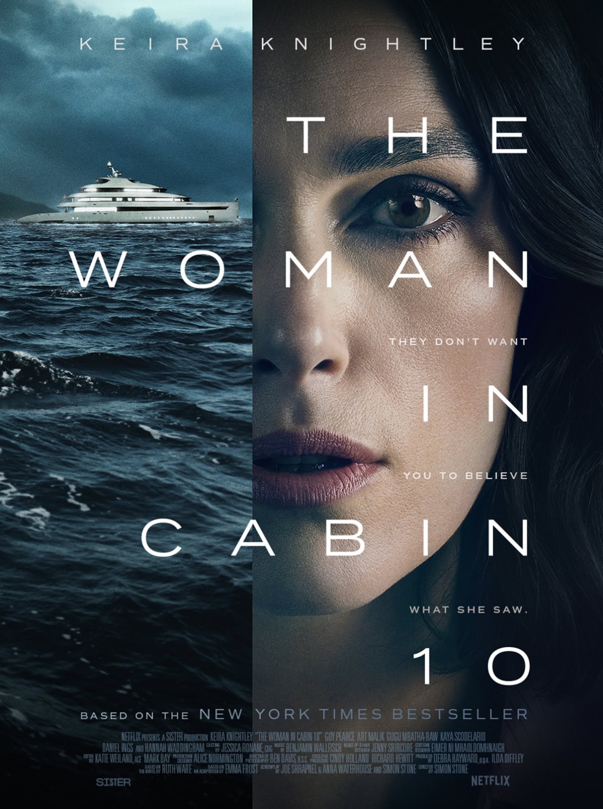 Encouraged by her co-workers to take on a lighter story and/or rest, journalist Laura Blacklock (Keira Knightley) decides to accept an invitation aboard a luxury cruise alongside rich CEO types coming together to raise awareness for a form of cancer that has affected one of their wives. Of course, with a title like The Woman in Cabin 10 (clearly based on an airport novel before one presses play), that’s mostly an excuse for a murder mystery, shady behavior, implausible twists, and even well-meaning characters touched with a case of enraging stupidity to keep the attempts at suspense going.