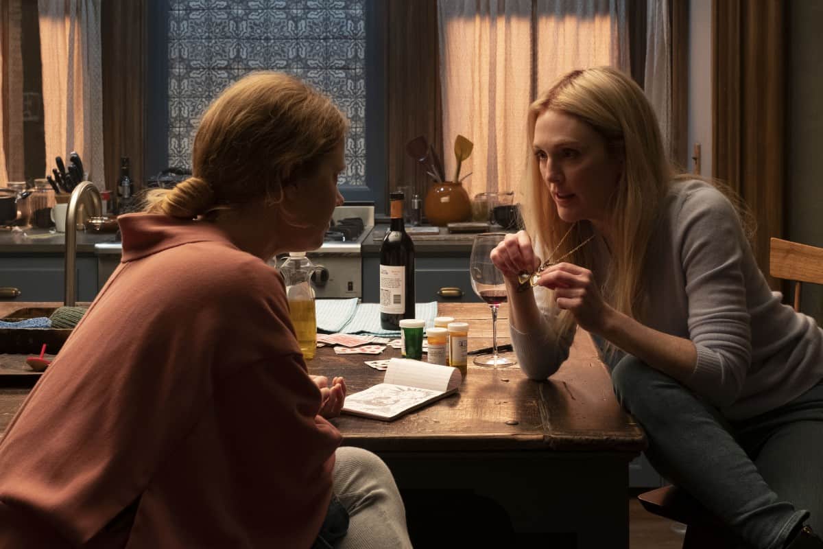 Backing up, Amy Adams is Anna Fox, a former child psychologist now who has agoraphobia at the hands of the tragedy so severe, all the air is sucked out of the room once her own psychologist Karl (Tracy Letts) disapproves of her self-deprecating humor while fresh off of a suicide attempt. Whatever happened now has Anna separated from her husband and daughter (Anthony Mackie and Mariah Bozeman), living alone in a dimly lit and dirty home, often walking around disheveled and unkempt. Think of it as Amy Adams’ physical transformation in Hillbilly Elegy but more restrained and without a southern accent. More concerning, Anna has developed a habit of spying on her neighbors living in the apartment complex across the street.